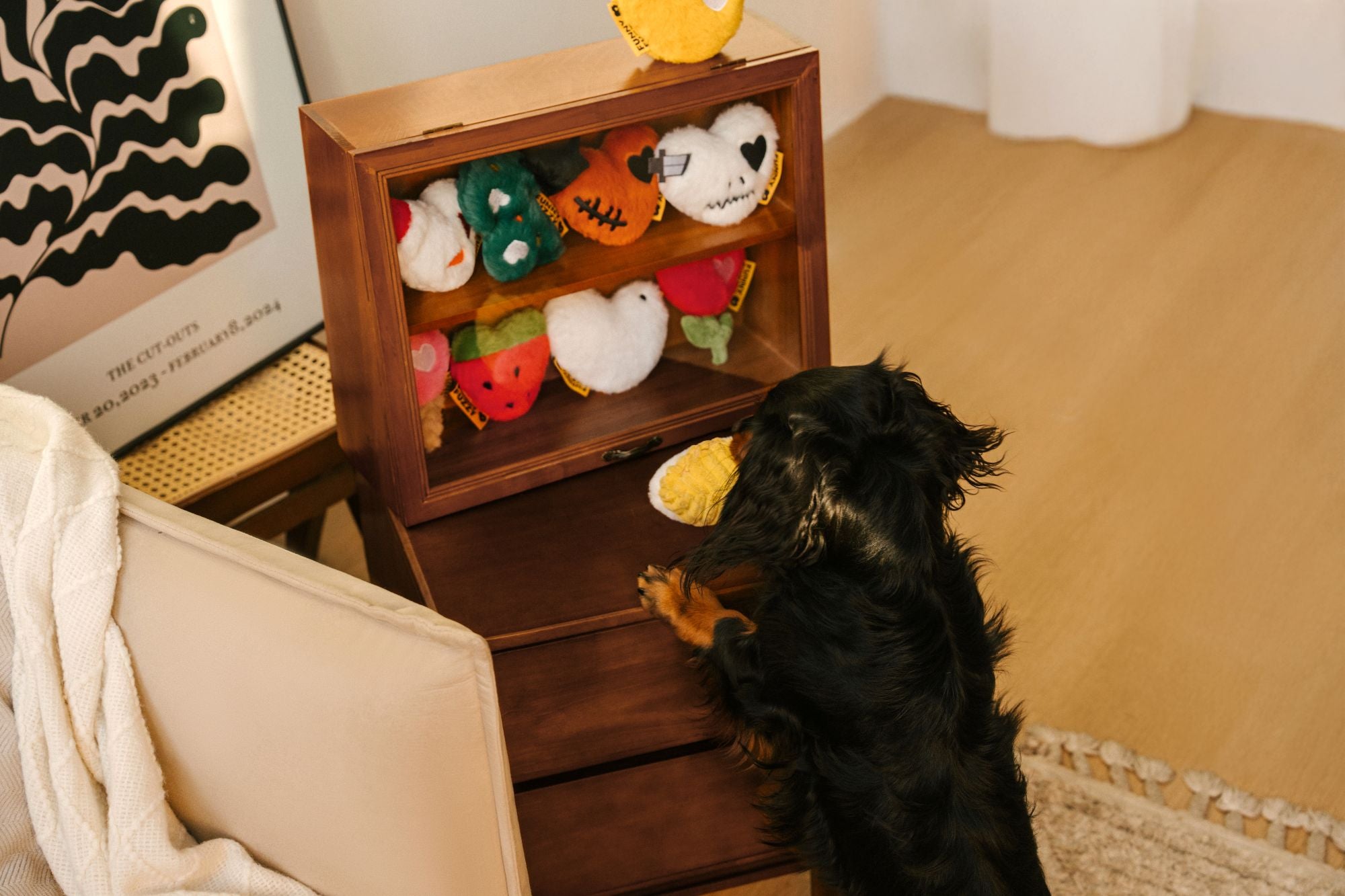 On a quiet winter morning, Emma unwrapped gifts with her pup. His eyes sparkled at a heart-shaped plush, and as she placed it in his paws, the moment became a memory to keep forever.