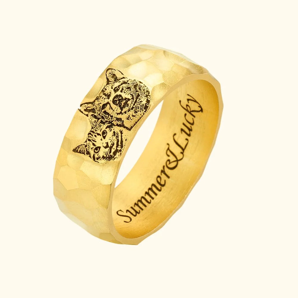 Engraved Sketch Drawing Photo Pet Portrait Hammered Ring