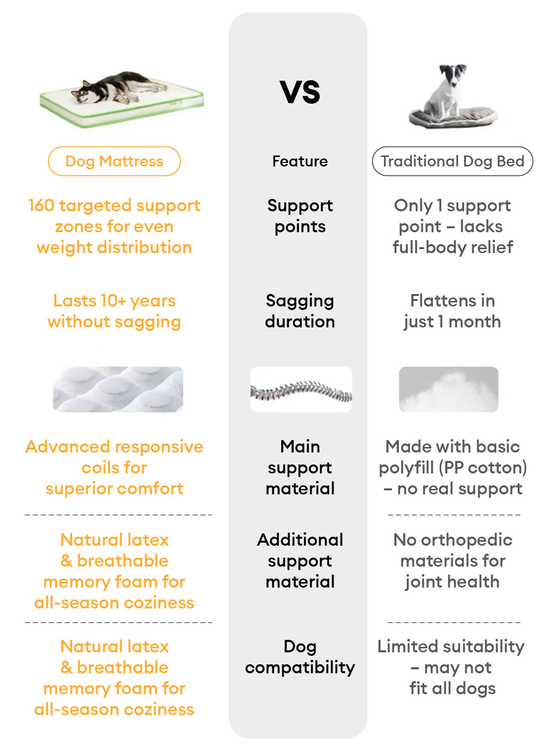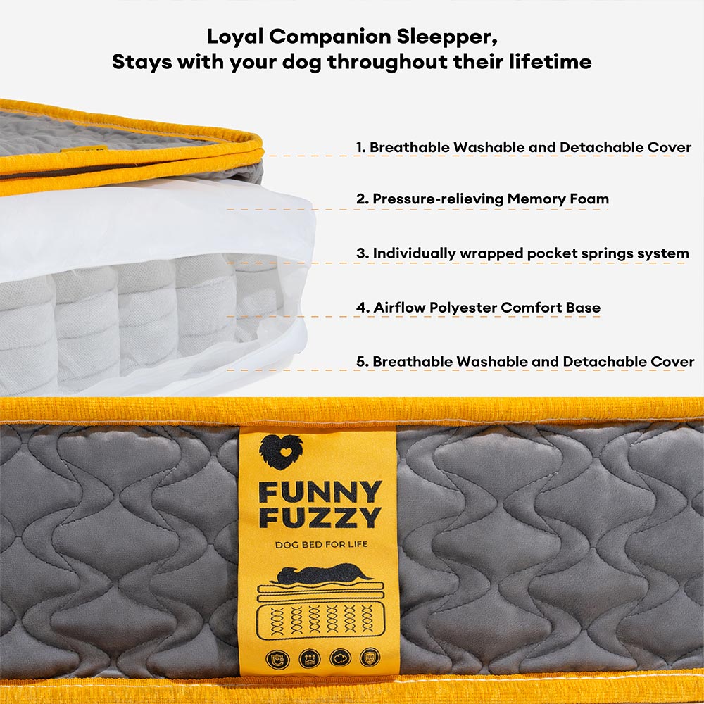 The mattress features high-quality, human-grade innerspring coils that provide firm, targeted support. These coils help with joint health and ensure that your dog sleeps comfortably for longer periods.