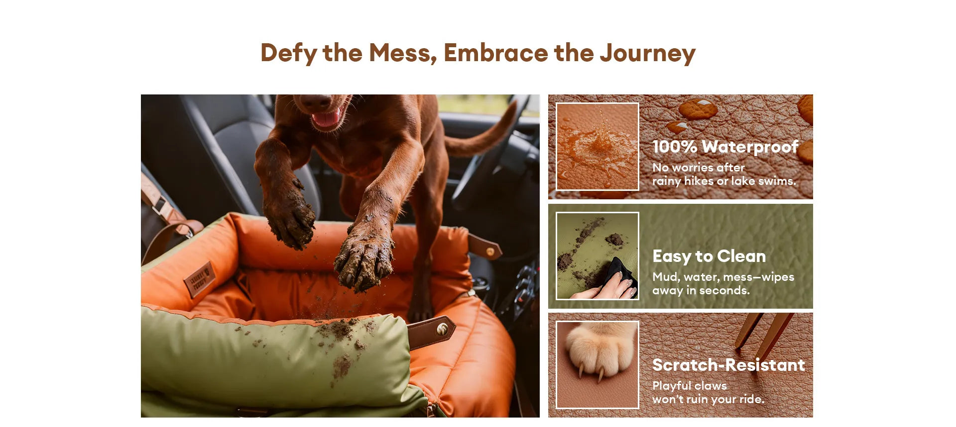 Elegant and Functional: Available in sophisticated dual-tone colors inspired by luxury automotive interiors, blending fashion with function for discerning pets and owners alike.