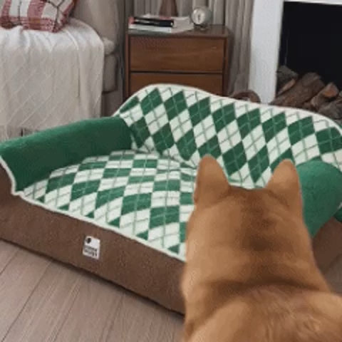 Style for the Holidays : Dress your space in festive cheer with our Christmas tree-inspired sofa bed. The merry mix of forest green, snow-white diamonds, and woody brown brings holiday magic to your pet's cozy corner.