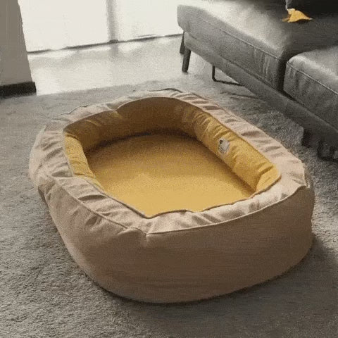 - Protects bones: The interior is filled with 3D high-density orthopedic sponge as well as pp cotton filled with full edges, which can relieve the pressure on joints and bones when the pet is resting, protect the health of the pet's spine, and allow the pet to comfortably place its head in any position while snoozing. Not only does it bring pets an all-round massage, it also reduces anxiety and promotes relaxation.