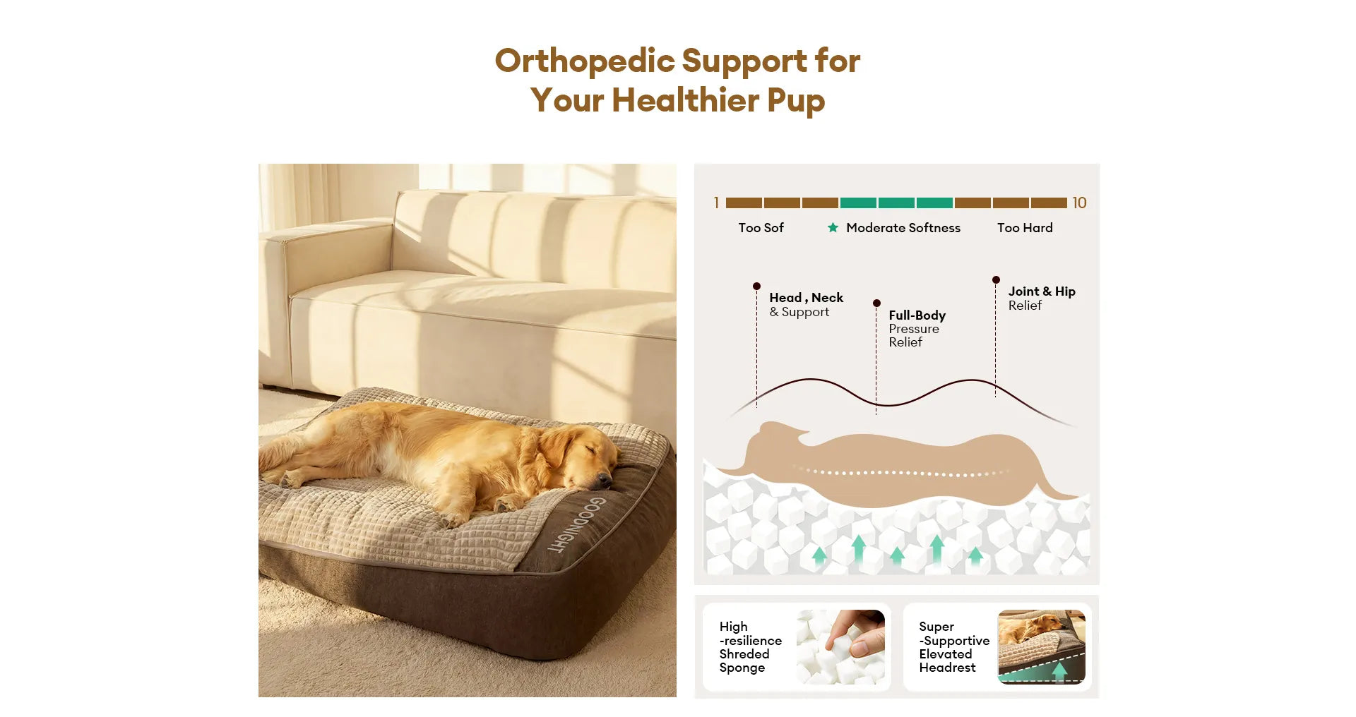 - Orthopedic Support for Joint Health: Filled with high-resilience shreded sponge padding, it contours to your dog’s body, easing pressure on joints, hips, and spine, making it an ideal choice for senior and large dogs.