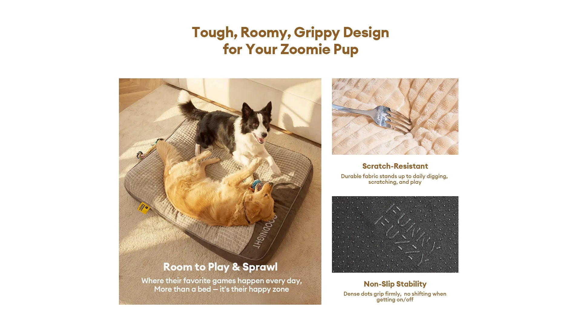 - Anti-slip: The bottom is covered with non-slip particles, effectively fixed dog bed will not easily move position.