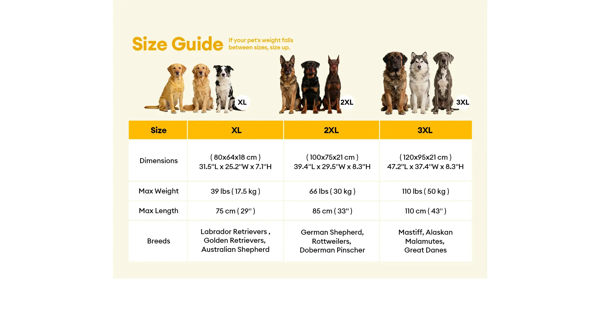 3XL: 120 x 95 x 21 cm / 47.2 x 37.4 x 8.3 in