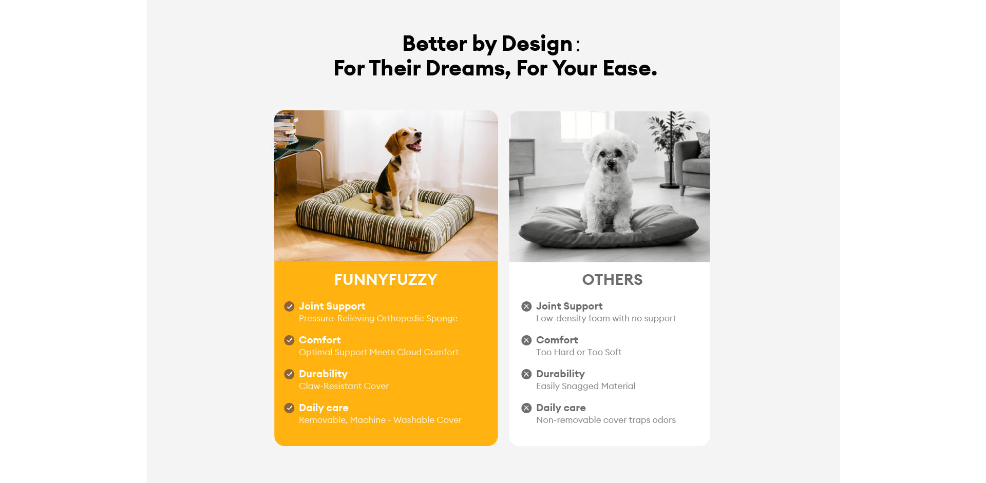 - Orthopedic Support : A soft, joint-cradling memory foam top layer sits atop a sturdy, sag-proof base—giving your pup the perfect balance of sink-in comfort and restorative support.