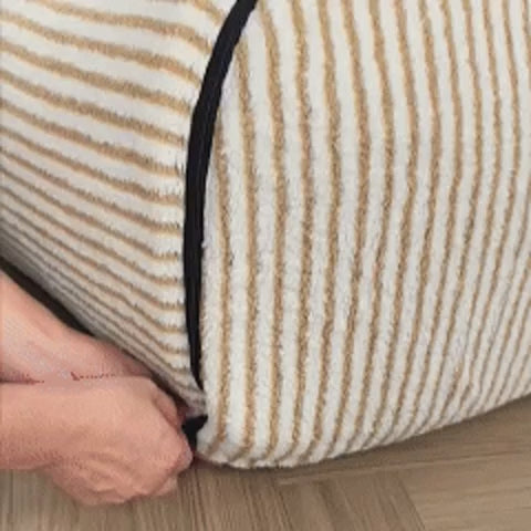 Give your furry friend the comfort they deserve with the FunnyFuzzy Striped Cave-Style Warm Deep Sleeping Snug Bed. Designed for both dogs and cats, this 2-in-1 convertible pet house delivers the ultimate balance of warmth, security, and style—perfect for any season or home.