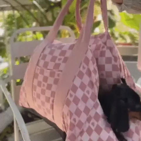 Vintage Heart Checkerboard Dog Car Seat Bed