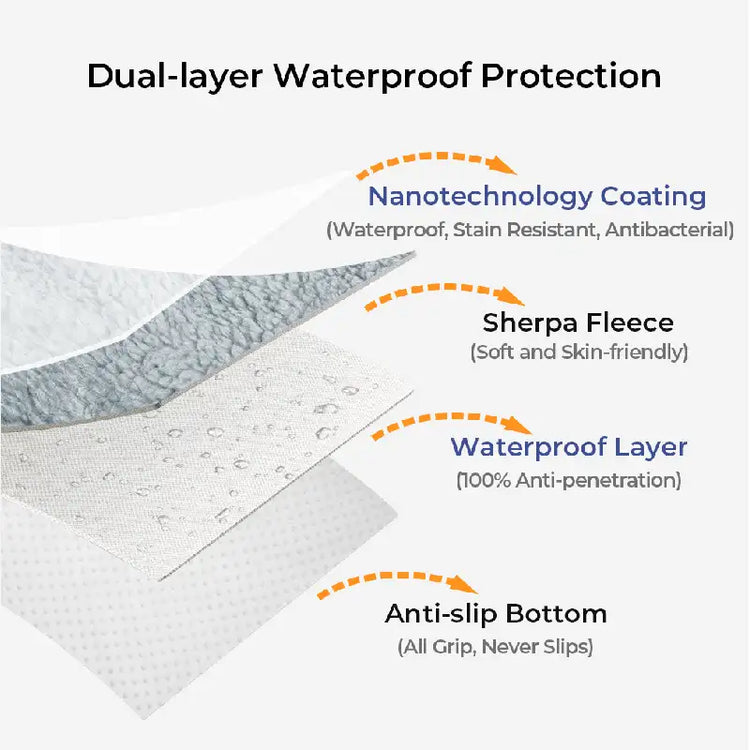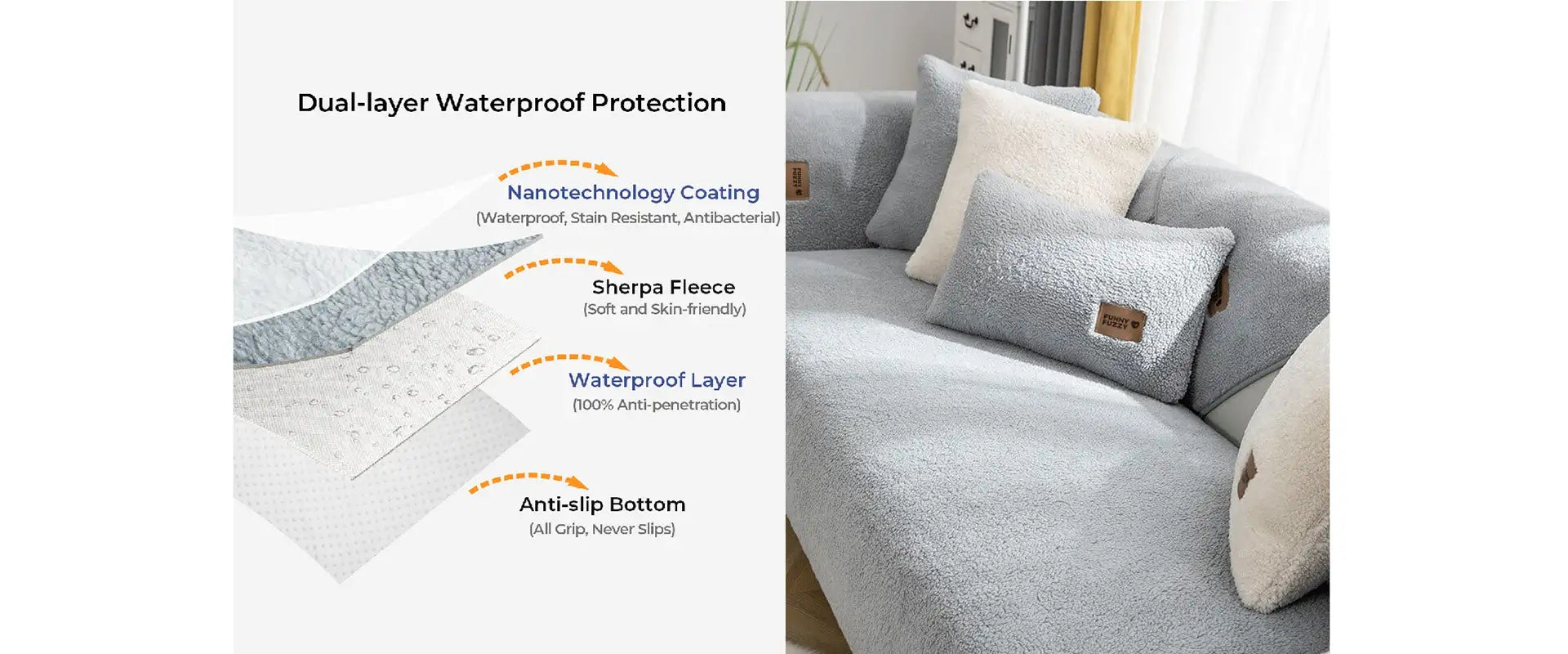 - Keeping a Fresh and Cozy Sofa with Waterproof Layer: By designing with a waterproof layer, the couch cover can remain clean and odour resistant as it effectively prevents any liquid from leaking from the Sherpa side to the microfiber fleece side of the couch cover.