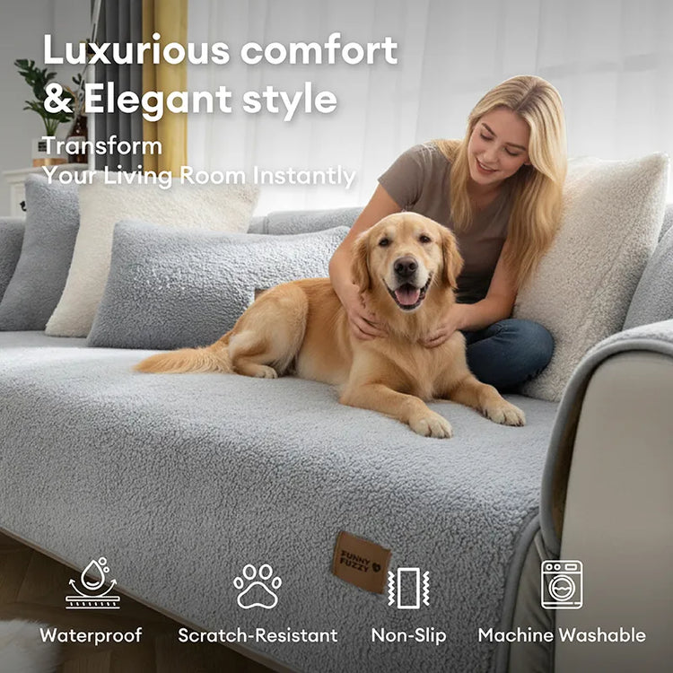 Waterproof Thick Fuzzy Faux Sherpa Fleece Non-Slip Sofa Cover Protector